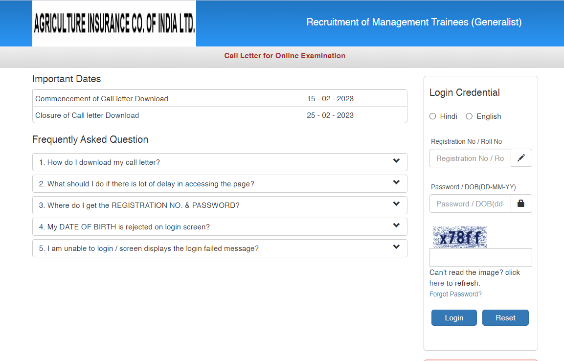 AIC India MT Admit Card 2023Post Name – Management Trainees(Agriculture Insurance Company Of India Limited) | |||||