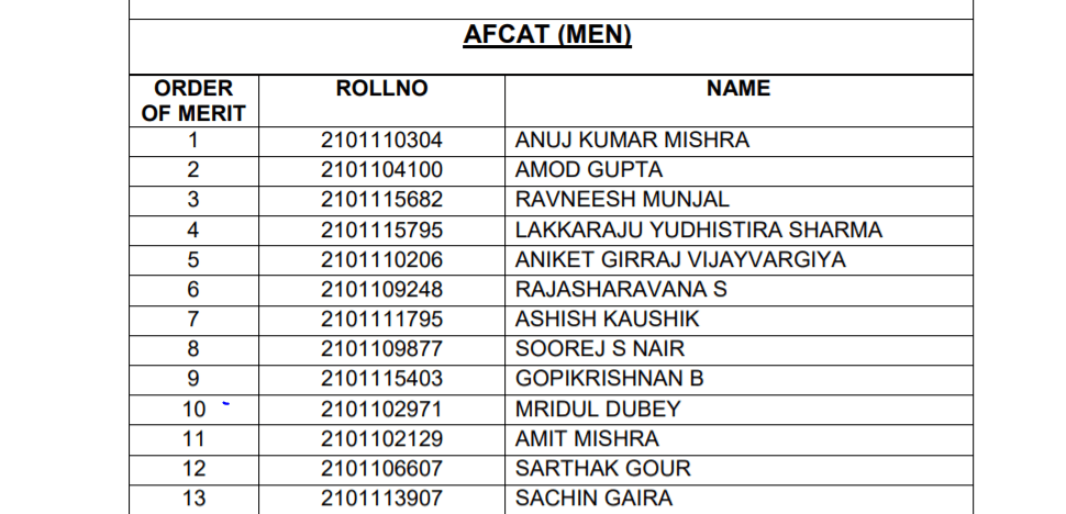 Check AFCAT 01/2021 Merit List | Click Here | ||||