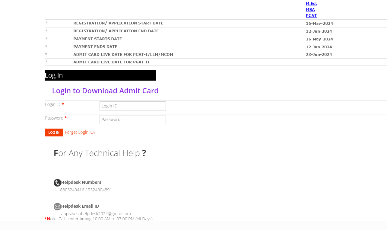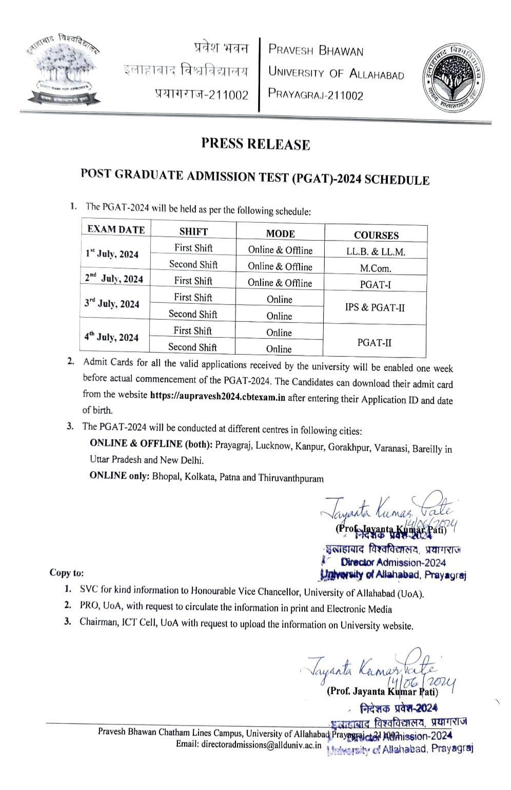 Allahabad University PGAT Admit Card 2024Exam Name – B.Ed, LLB, PG & Other Courses(Central University of Allahabad, Prayagraj (U.P.)) | |||||