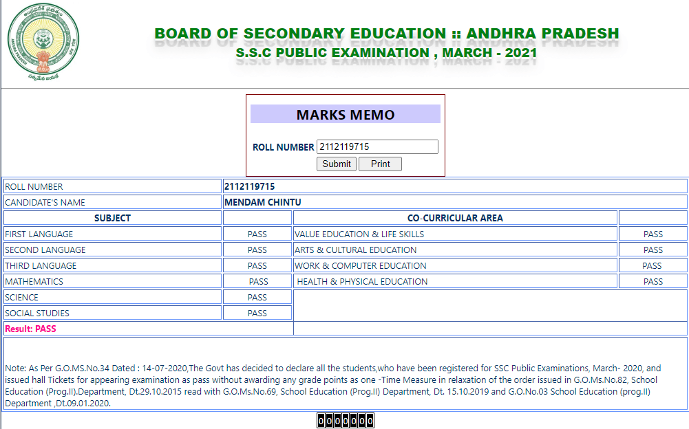 AP SSC 10th Result 2021 | Server 1 || Server 2 | ||||
