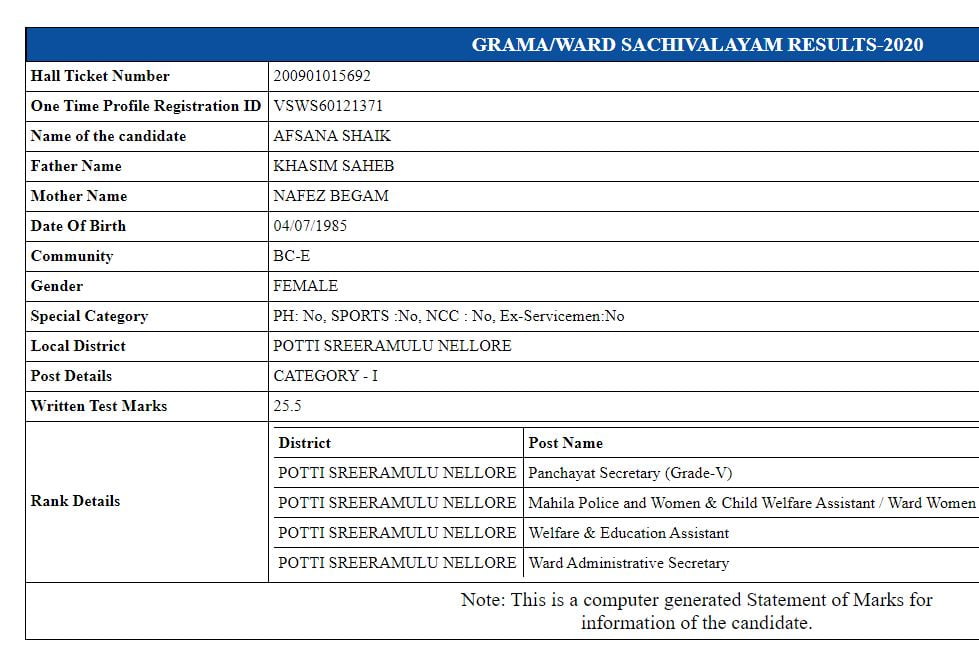 5. Candidates can also download their AP Grama Sachivalaya Result from official site of the AP Grama Sachivalaya .