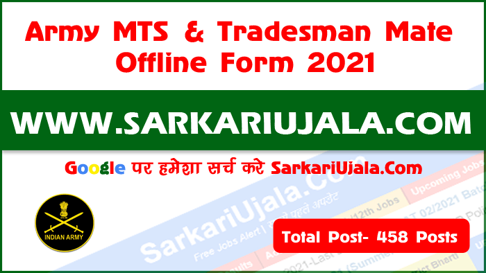 Post Description – Indian Army Civilian is inviting online applications for Tradesman Mate, LDC ,MA, MTS & Fireman for 415 posts. Interested people meet all the eligibility criteria, apply online Details Of Recruitment Of Army MTS & Tradesman Mate Offline Form 2021Posts Name – Tradesman Mate, LDC ,MA, MTS & Fireman Number Of Posts – 458 Posts Category Wise Posts – Tradesman Mate (Mazdoor)- 330 Posts JOA (LDC) – 20 Posts Material Assistant (MA) – 19 Posts MTS – 11 Posts Fireman – 64 Posts 225 (I) ABOU Tradesman Mate – 14 Posts Pay Scale – Rs.19500 – 62000/- + Grade Pay Rs.1900/- Education Qualification – Tradesman Mate– 10th Pass JOA (LDC) – 12th passed Material Assistant (MA) – Graduate any discipline from any recognized university or Diploma in Material Management from a recognized University/ organisation MTS – 10th pass Fireman – 10th pass 225 (I) ABOU Tradesman Mate – 10th pass Physical Details For Fireman (Male Only) – Height – 165 Cm Height For ST- 162.5 Cm Chest- 81.5 Cm To 85 Cm Running – 1600 Meter In 6 Minute 30 Second How to Apply Online Army MTS & Tradesman Mate Offline Form 2021 – The application should be addressed to “Commandant, 41 FAD, PIN-909741, C/o 56 APO: recd through ordinary post/ registered post/ speed post. Required Documents For Online Application – 10th / 12th/Graduation Mark sheet And Certificates Aadhar Card / Pan Card Passport Size Photo Signature Selection Mode – Written Examination PET/PST Final Merit List