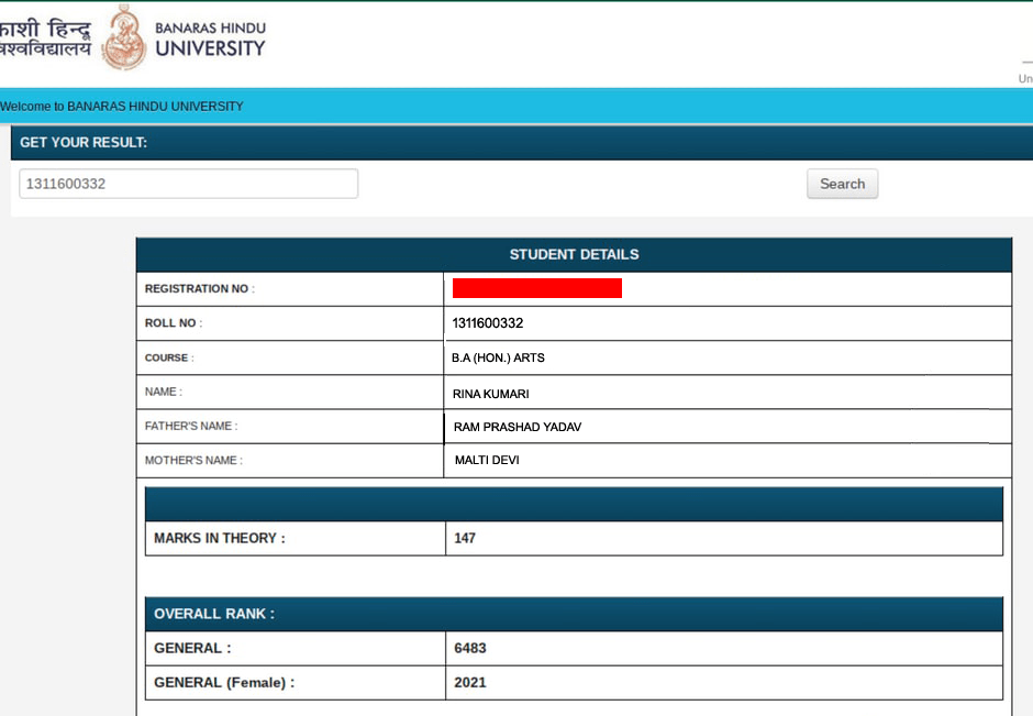 BHU BA, B.Com, B.Sc Entrance Result 2020