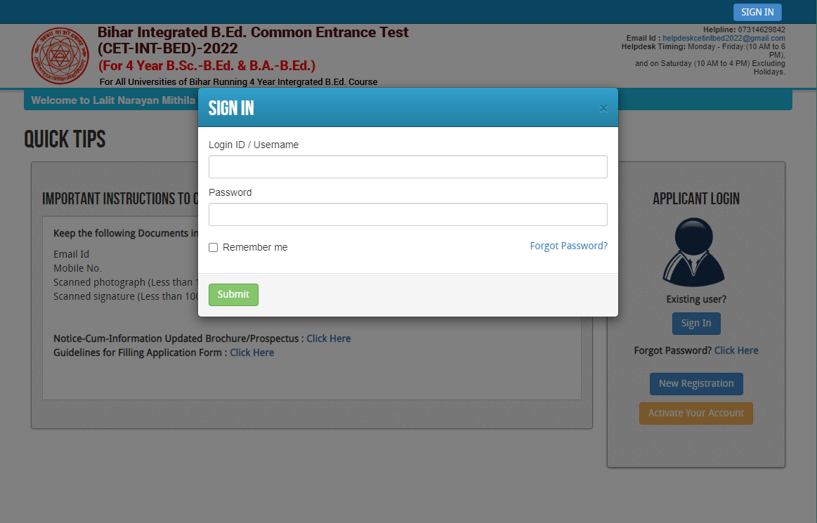 Bihar 4 Year B.Ed Entrance Admit Card 2022Course Name – CET 02 Year B.Ed(Lalit Narayan Mithila University , Bihar) | |||||