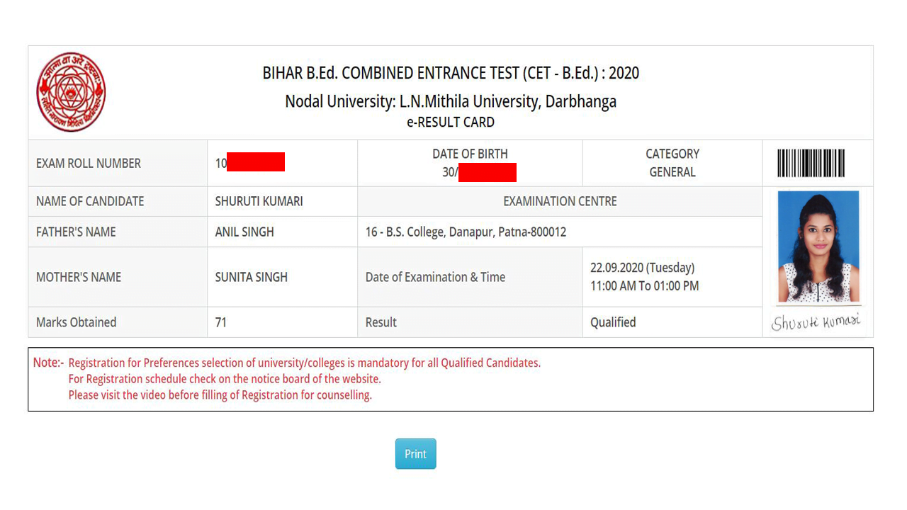 Bihar B.Ed CET Admit Card 2020(Lalit Narayan Mithila University, LNMU)Examination Name – Bihar B.Ed. Combined Entrance Test – CET-2020 | |||||