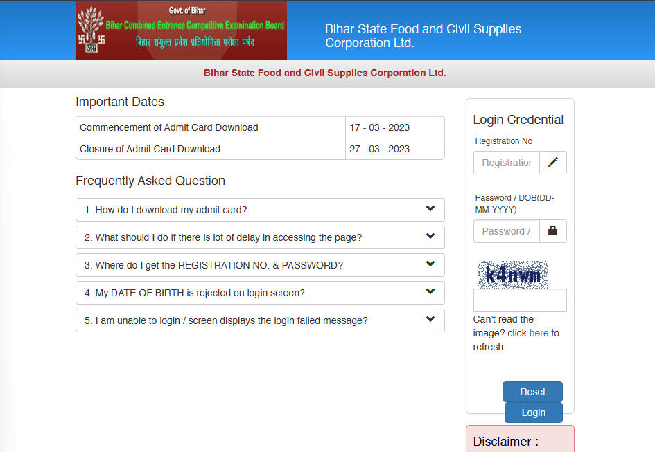 Bihar BSFC Various Post Admit Card 2023Post Name – LDC, Accountant , Quality Controller ,AAO & Assistant Manager(Bihar State Food and Civil Supplies Corporation Ltd) | |||||
