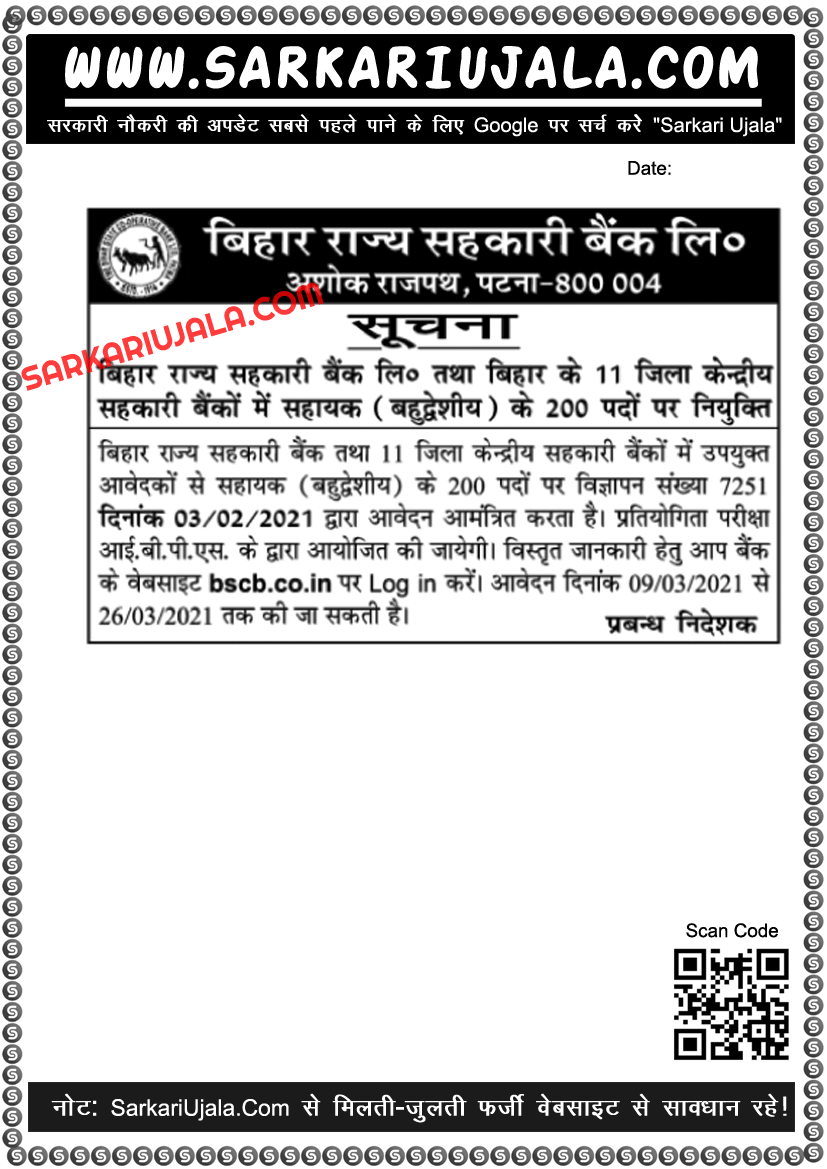 Bihar Co-operative Bank Assistant Recruitment 2021Post Name – Assistant (Multipurpose)(Bihar State Co-operative Bank Ltd.) | |||||