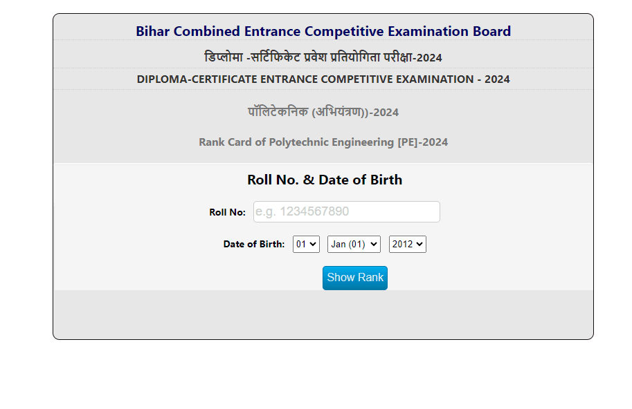 Bihar DCECE Polytechnic / Diploma Admit Card 2024Course Name – Polytechnic / Diploma(Bihar Combined Entrance Competitive Examination Board (BCECEB)) | |||||