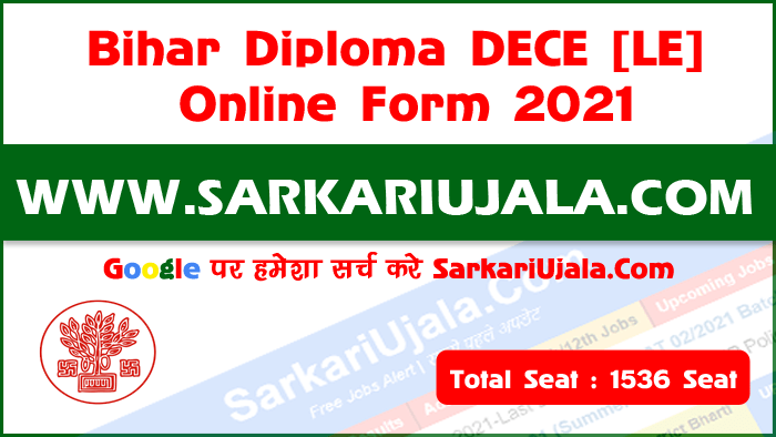 Bihar Diploma DECE [LE] Admission Online Form 2021Exam Name – Diploma Entrance Competitive Examination [Lateral Entry](Bihar Combined Entrance Competitive Examination Board (BCECEB)) | |||||