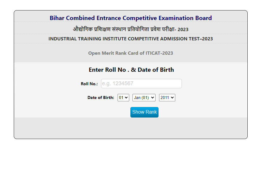 Bihar ITI Entrance Admit Card 2023Course Name – ITI(Bihar Combined Entrance Competitive Examination Board (BCECEB)) | |||||