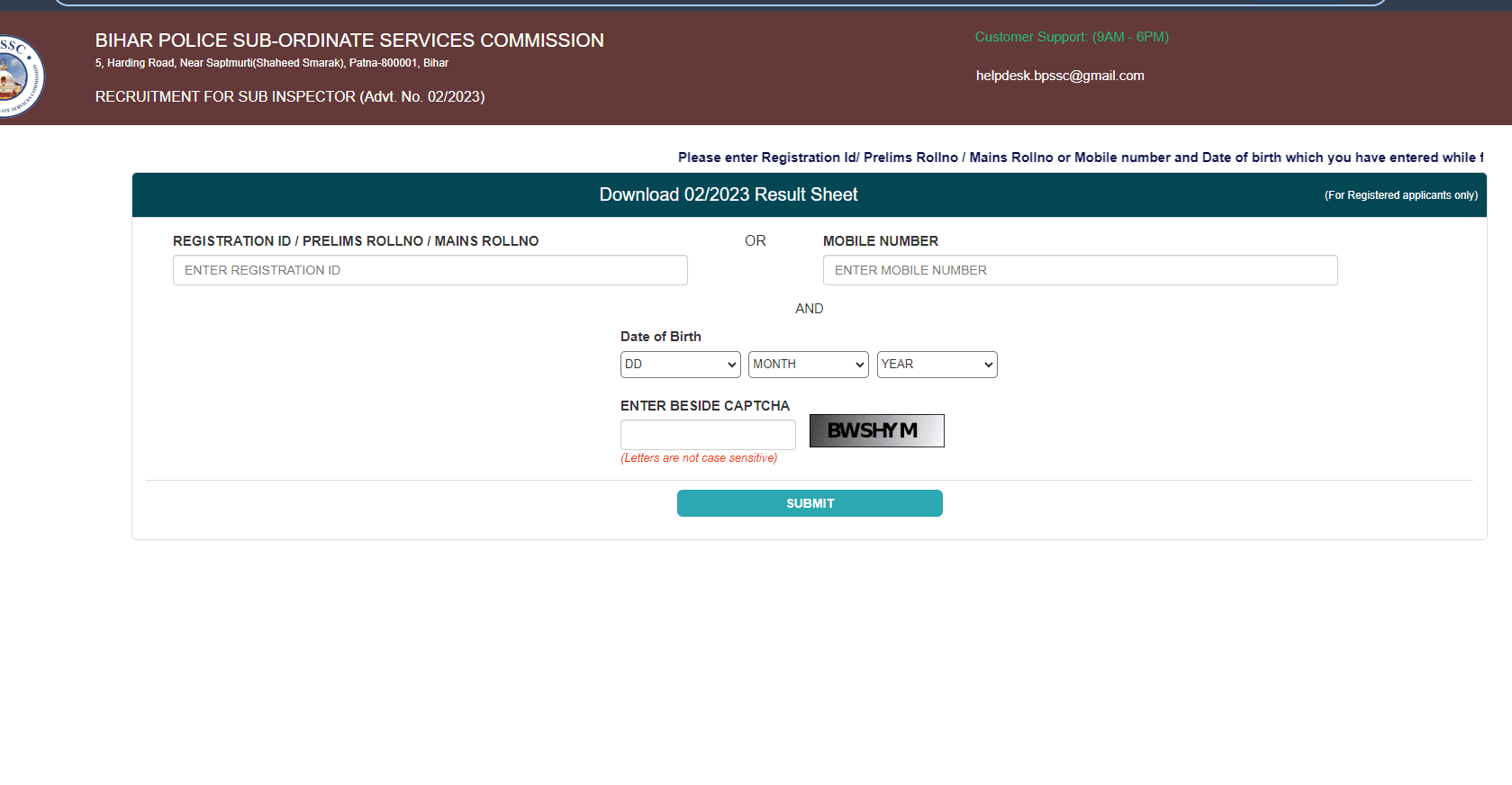 Post Description : BPSSC Bihar Police Subordinate Services Commission Has Been Released Admit Card For Bihar Police SI Online Form 2023. Which Exam Date Is 17 December 2023. Interested People Download Admit card With Using Your Roll No & DOB . Instructions for Downloading the Bihar Police SI Admit Card 2023: 1. In order to download their Bihar Police SI Admit Card 2023 candidates are required to go to the important link section provided below. 2. After getting the link candidates need to click it for downloading their Bihar Police SI Officer Admit Card. 3. Candidates need to provide their following details-: Registration No. /Roll No. DOB/Password Captcha Code(if specified) 4. After providing their details appropriately candidates will be able to download their Bihar Police SI Admit Card. 5.Candidates can also download their Admit Card from official site of the BPSSC.