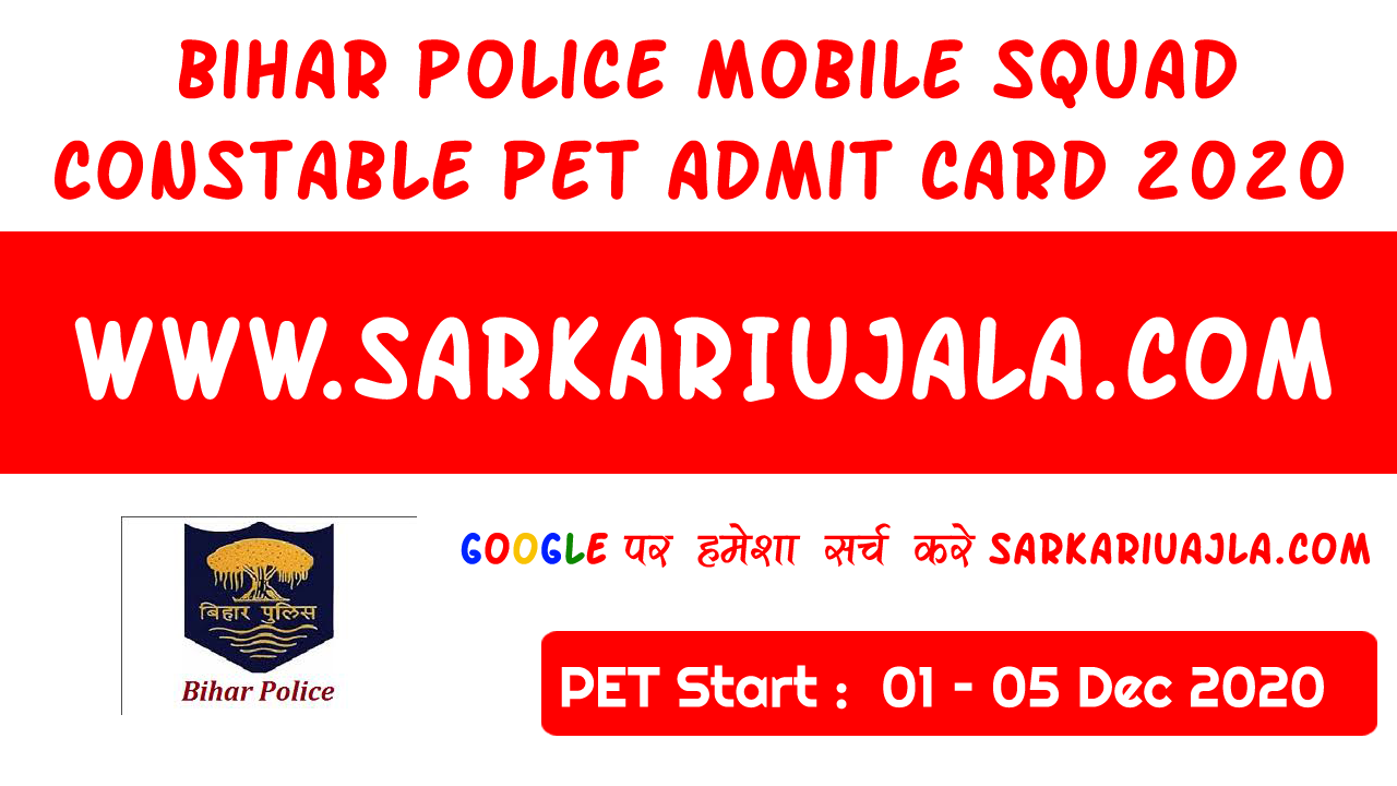 Bihar Police Mobile Squad Constable PET Admit Card 2020Post Name – Bihar Police Mobile Squad Constable(Central Bihar Police Selection Commission)Post Description : Central Bihar Police Selection Commission are Published Results For Bihar Police 11880 Posts Constable. Interested People Check Results With Your Roll No or your name . | |||||