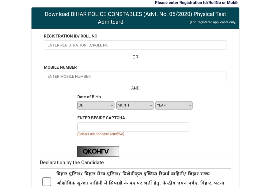 CSBC Bihar Police Constable Admit Card 2021Post Name – Constable(Central Selection Board of Constable,Bihar) | |||||