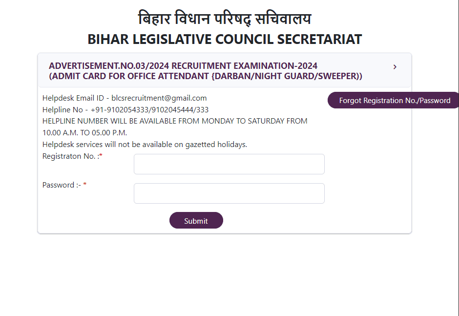 BLCS Bihar Sachivalaya Office Attendant Admit Card 2024Post Name –Office Attendant (03/2024)(Bihar Legislative Council (Sachivalaya)) | |||||