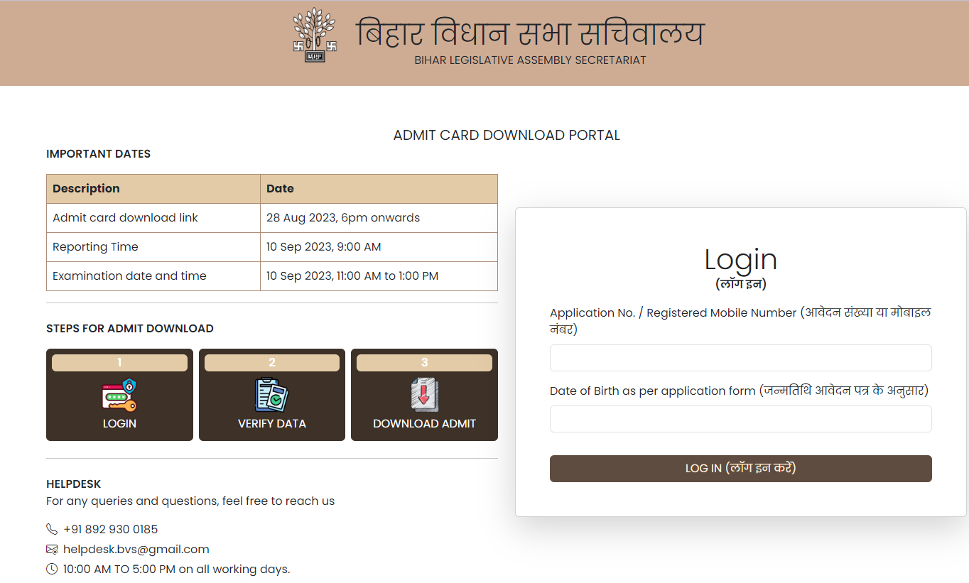 Bihar Vidhan Sabha Security Guard Admit Card 2023 | |||||