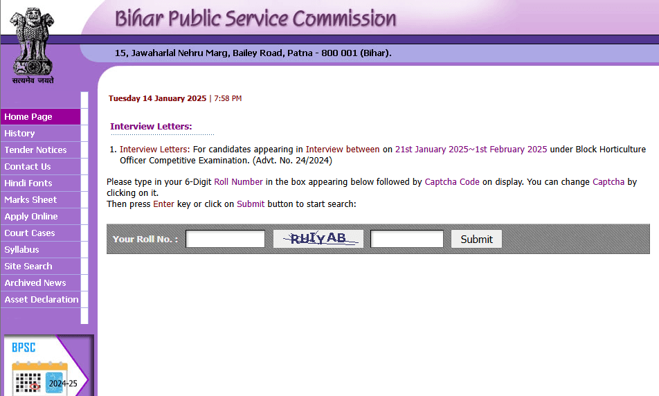 BPSC Block Horticulture Officer Admit Card 2024 | |||||