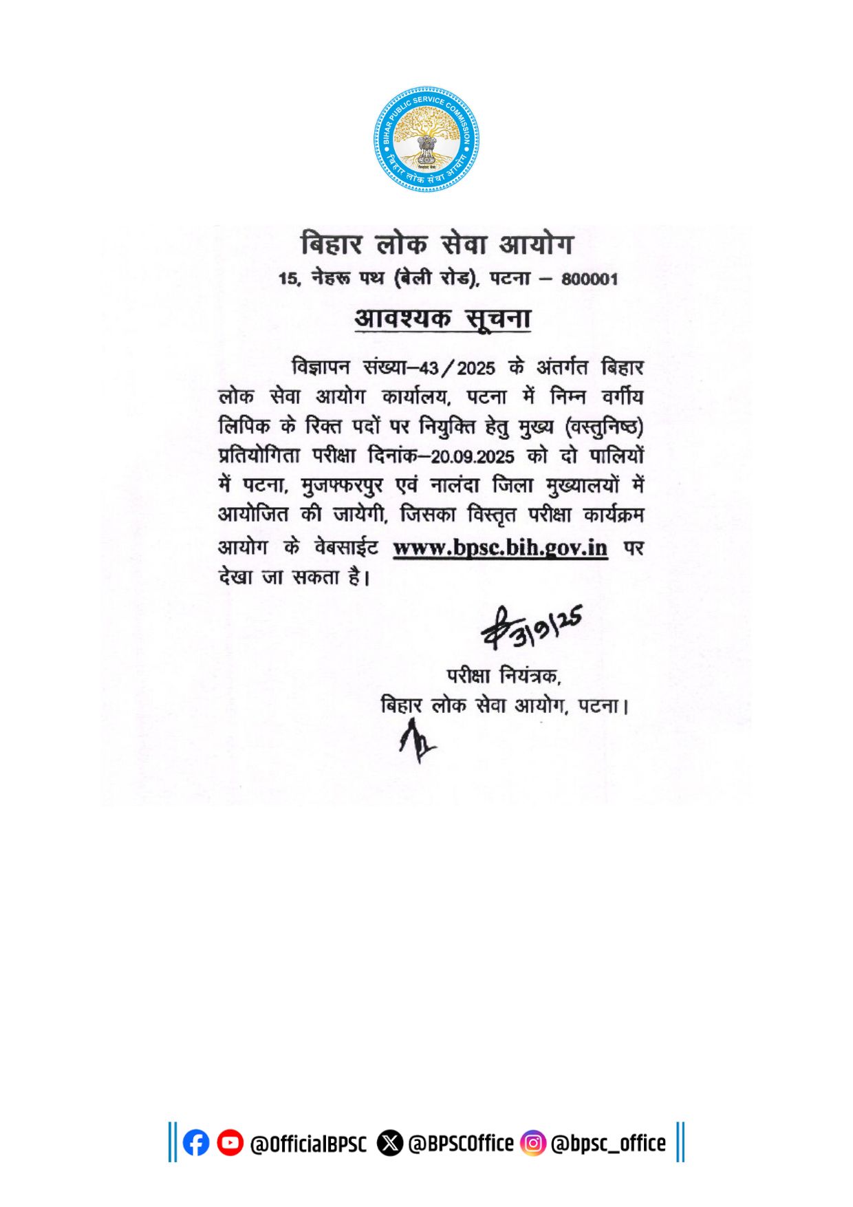 Post Description : BPSC Bihar Public Service Commission Will Be Published Admit Card of BPSC LDC 10+2 Online Form 2025, which Exam Date is 20 September 2025. so now you have to prepare for the exam very well, our best wishes are with you! And keep checking SarkariUjala.Com for new updates .