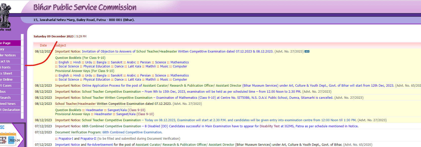 Post Description : BPSC Bihar Public Service Commission Has Been Released Admit Card For BPSC Bihar Teacher Online Form 2023 . Which Exam Date Is 07-15 December 2023. Interested People Download Admit card With Using Your Roll No & DOB . Instructions for Downloading the BPSC Bihar Teacher Admit Card 2023 : 1. In order to download their BPSC Bihar Teacher Admit Card 2023 candidates are required to go to the important link section provided below. 2. After getting the link candidates need to click it for downloading their BPSC Bihar Teacher Admit Card. 3. Candidates need to provide their following details-: Registration No. /Roll No. DOB/Password Captcha Code(if specified) 4. After providing their details appropriately candidates will be able to download their BPSC Bihar Teacher Admit Card. 5.Candidates can also download their Admit Card from official site of the BPSC. | |||||