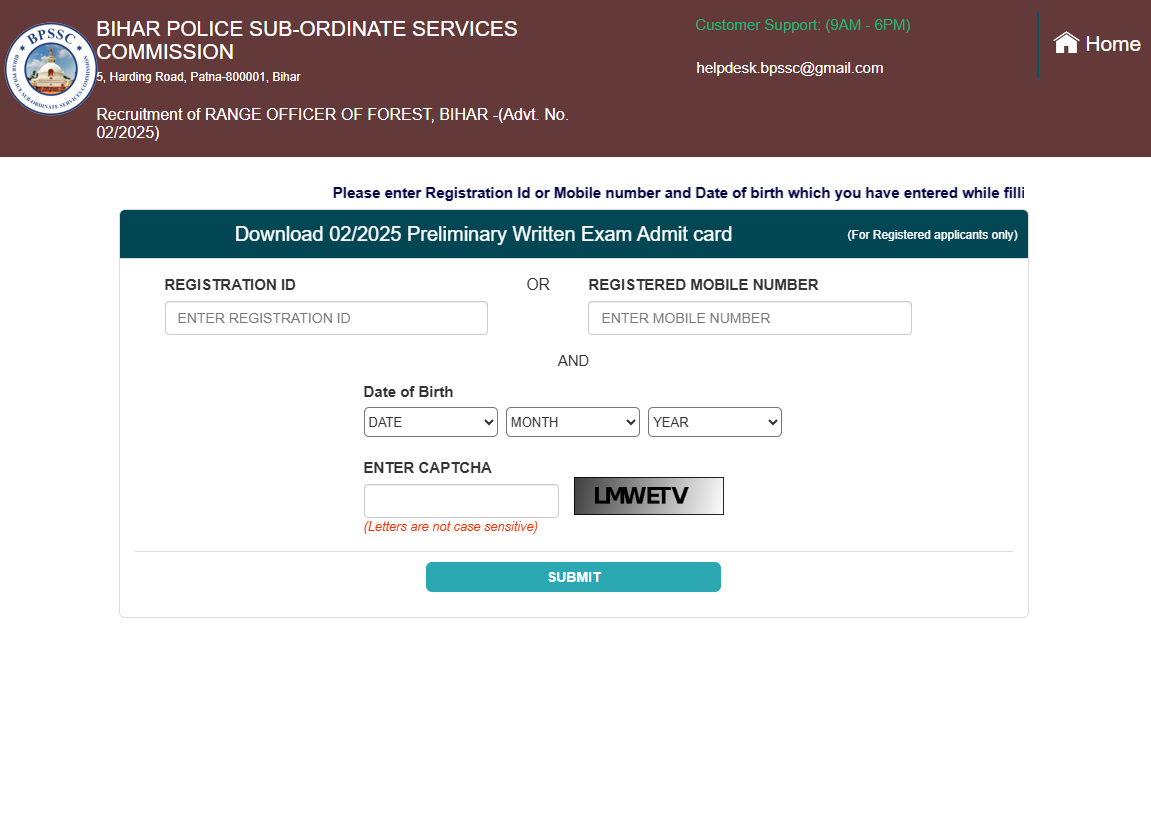 4. After providing their details appropriately candidates will be able to download their BPSSC Forest Range Officer Admit Card.