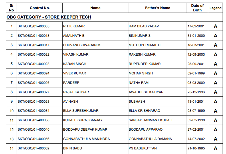 Download SKT (Store Keeper Technical) Selected List | Click Here | ||||