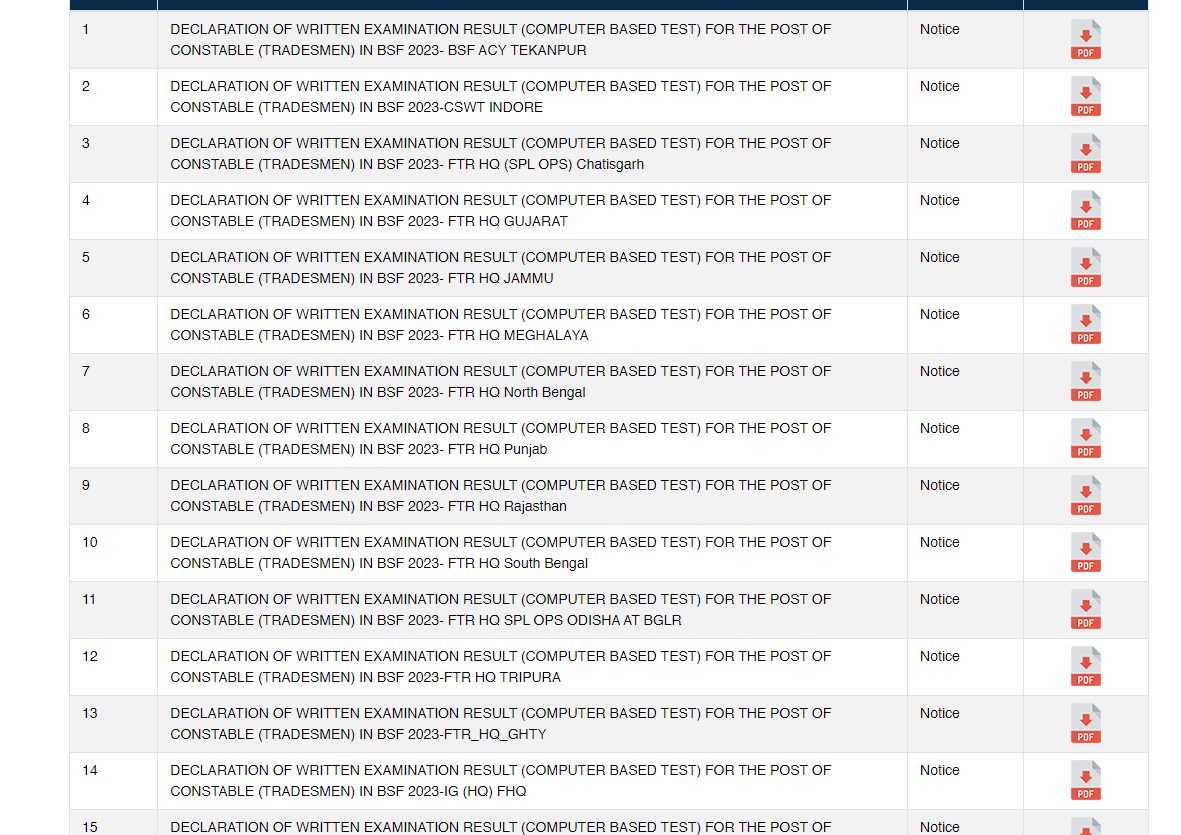 IMPORTANT DATESExam Date – May 3rd Week 2023 Admit Card – 13-05-2023 2nd Phase (CBT) Exam- 28-08-2023 2nd Phase (CBT) Admit Card- 14-8-2023 Answer Key- 01-09-2023 Result – 06-11-2023 Final Result – 21-12-2023 | VACANCY DETAILSExam Name – BSF Constable Tradesman Recruitment 2023 Total Vacancy- Advt. No. – CT/2023 | ||||