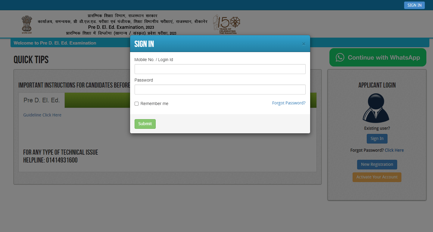 Rajasthan Pre DELED Admit Card 2023Course Name – Diploma (General/Sanskrit)(Primary Education Department, Rajasthan) | |||||