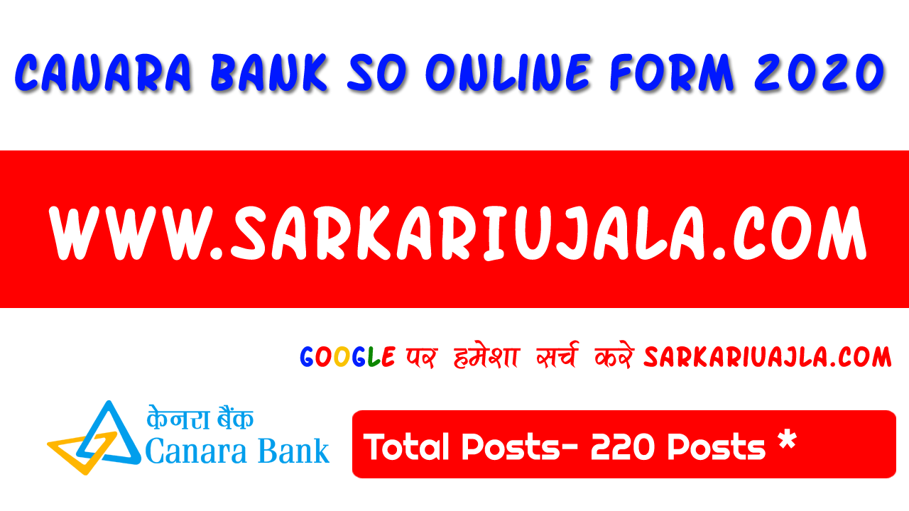 Canara Bank SO Recruitment 2020Post Name – SO (Specialist Officers)(Canara Bank) | |||||