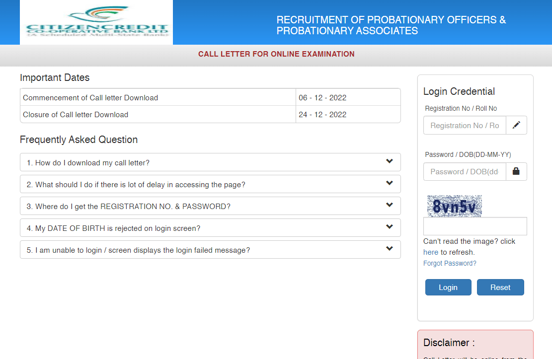 CCBL PO & PA Admit Card 2022Post Name – Probationary Officers & Probationary Associates(Citizen Credit Co-Operative Bank Ltd) | |||||