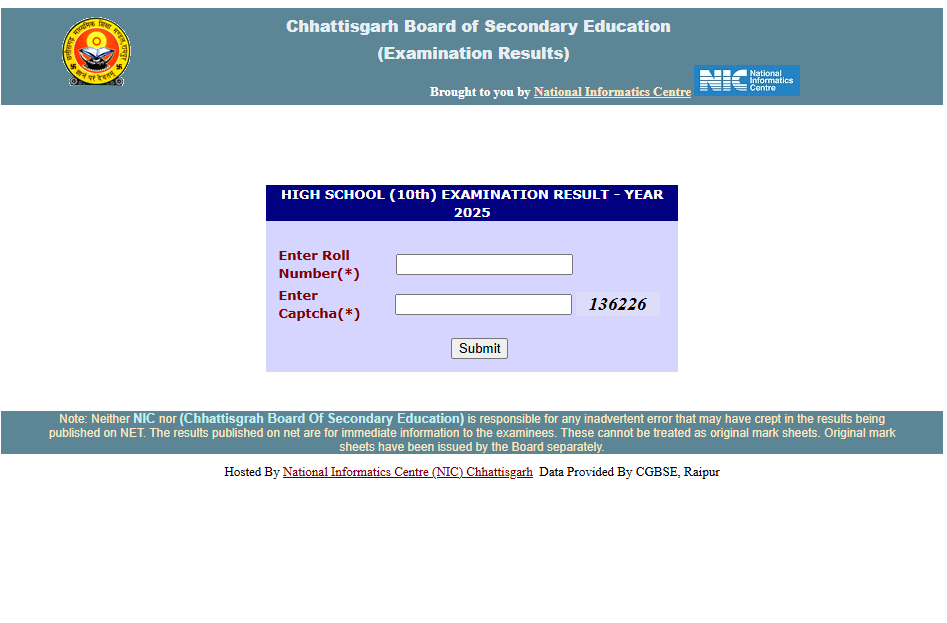 CGBSE Board 10th, 12th Annual Exam 2025 | |||||