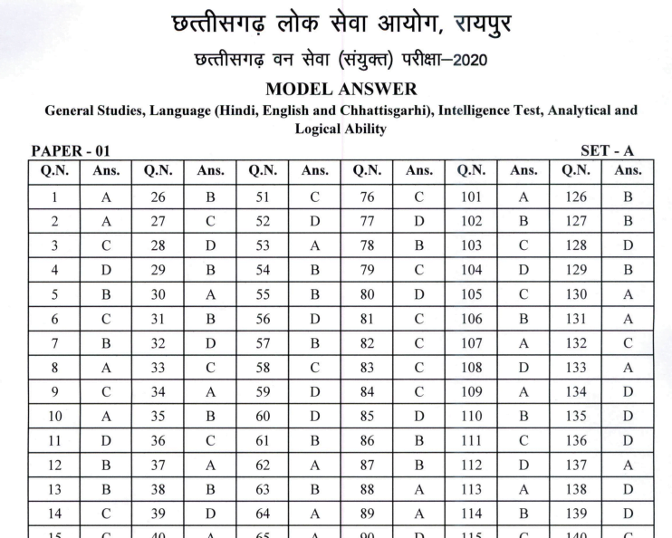 CGPSC Forest Ranger / ACF Answer Key 2021