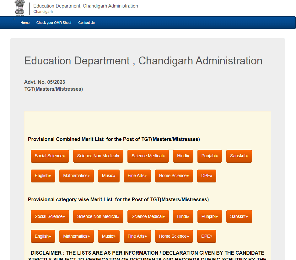 Chandigarh TGT Teacher Admit Card 2024Post Name – TGT(Masters/Mistresses) 05/2023(Department of Education, Chandigarh) | |||||