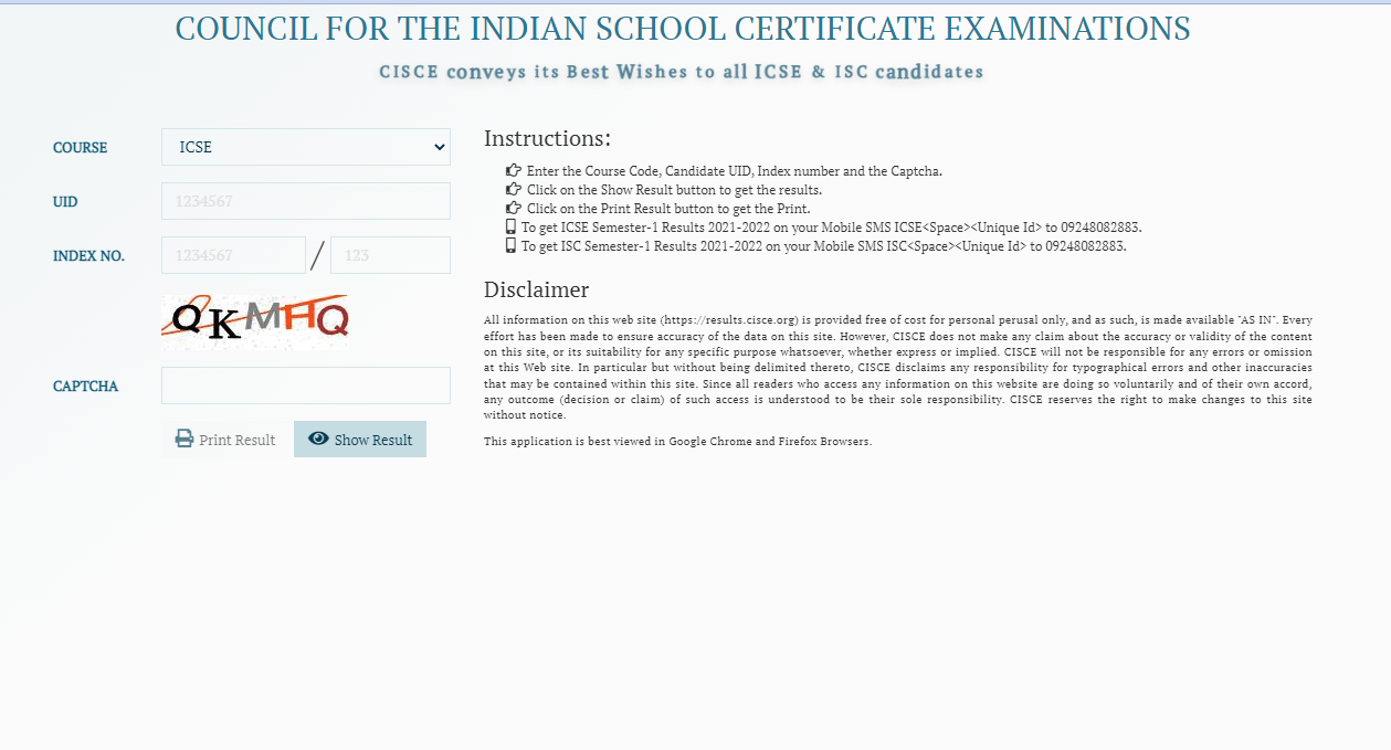CISCE Board Annual Exam Result 2022(Council for Indian School Certificate Examination)Course Name – Class X and Class XII | |||||