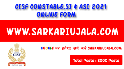 CISF Constable, SI & ASI Recruitment 2021Post Name – Constable, SI & ASI (Contract Basis)नोट: कृपया ध्यान दे! ये फॉर्म केवल Ex-Serviceman के लिए है (Central Industrial Security Force (CISF)) | |||||