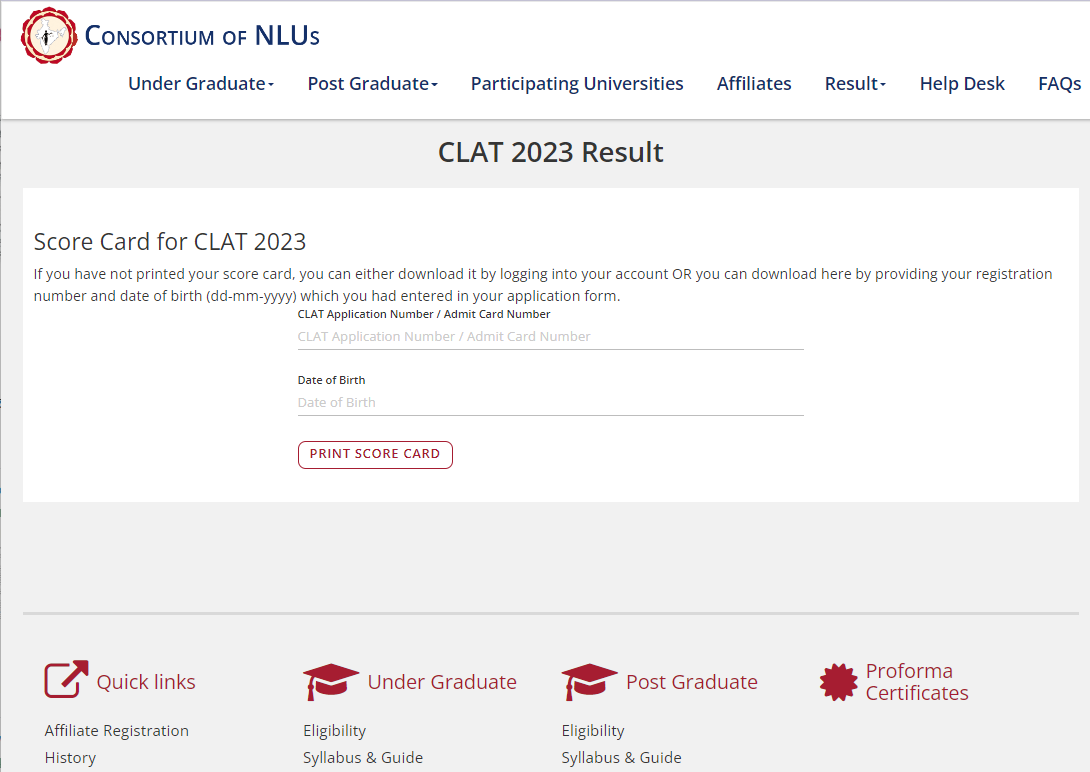 CLAT 2023 Entrance Admit Card(Consortium of National Law Universities) Exam Name – Common Law Admission Test | |||||