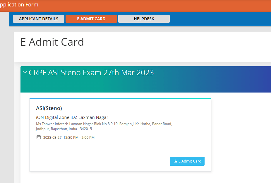 CRPF ASI Stenographer Admit Card 2023Post Name – ASI (Stenographer) & Head Constable (Ministerial)(Central Reserve Police Force) | |||||