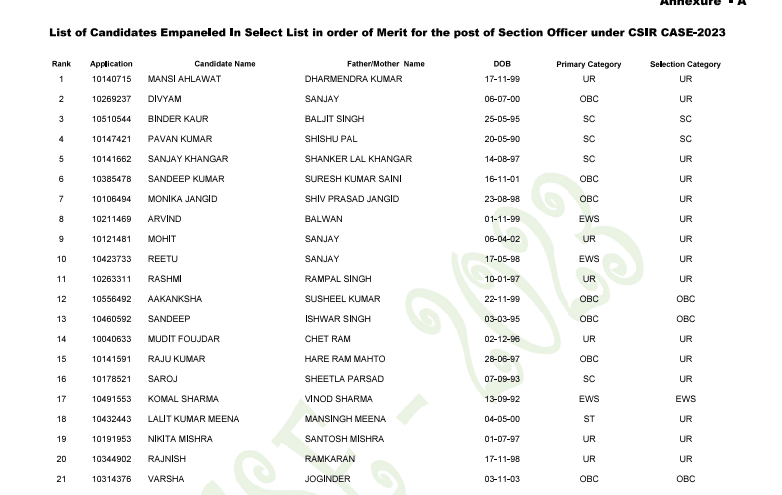 CSIR CASE Section Officer SO ASO Admit Card 2024Post Name – Section Officer / Assistant Section Officer(Combined Administrative Services Examination) | |||||