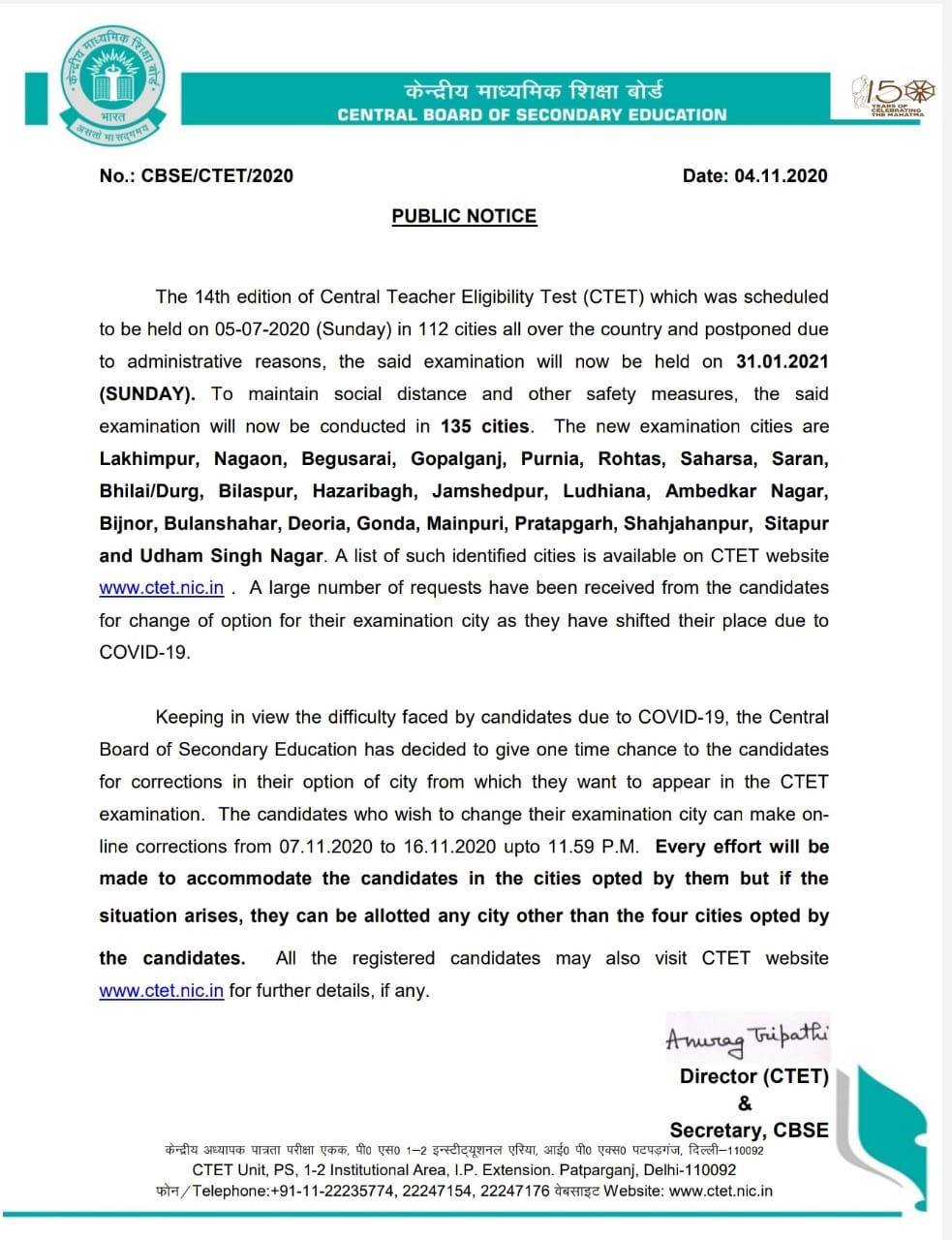 IMPORTANT DATESExam Date – 31 Jan 2021 Change Center- 07-16 Nov 2020 | VACANCY DETAILS• Exam Name – Central Teachers Eligibility Test 2020 • Number of Seats – As Per Rules | ||||