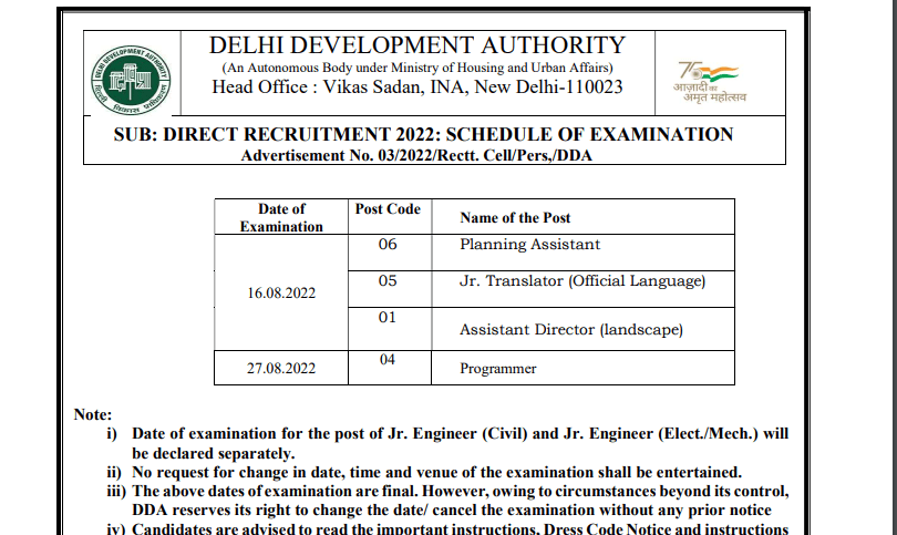 IMPORTANT DATESDate of Exam – 16 & 27 Aug 2022 Admit Card – 26-07-2022 | VACANCY DETAILSExam Name – DDA 03/2022 Various Post Recruitment 2022 Total No of vacancy- 279 Posts | ||||