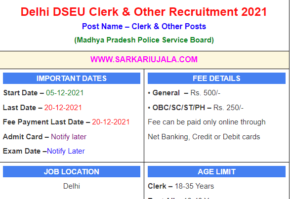Delhi DSEU Clerk & Other Recruitment 2021Post Name – Clerk & Other Posts(Delhi Skill and Entrepreneurship University) | |||||