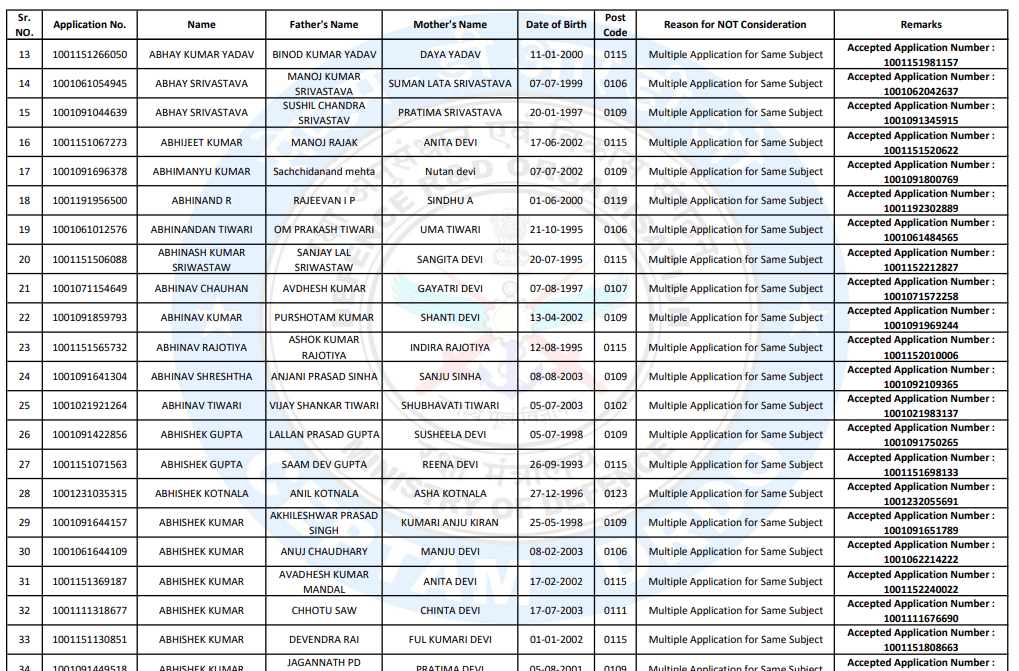 Download Reject List | Click Here | ||||