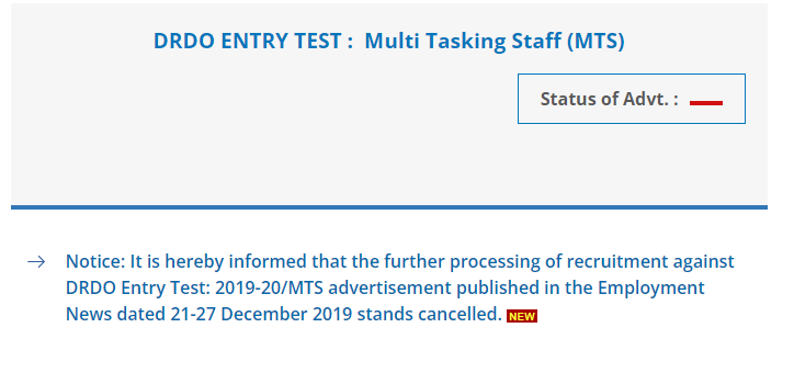 DRDO MTS Recruitment 2019Post Name – Multi Tasking Staff( Defence Research & Development Organization (DRDO)) | |||||