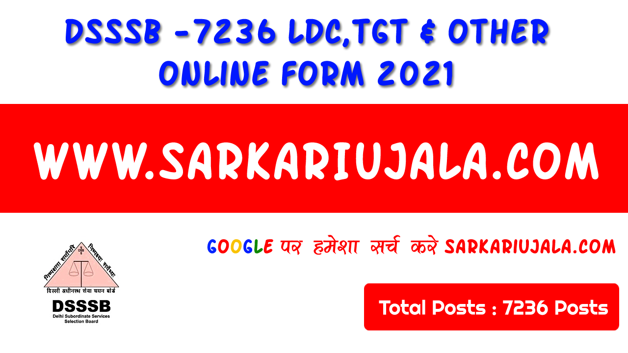 DSSSB -7236 LDC,TGT & Other Post Recruitment 2021Post Name – TGT, Assistant Teacher, Patwari ,LDC & Other Posts(Delhi Subordinate Services Selection Board) | |||||