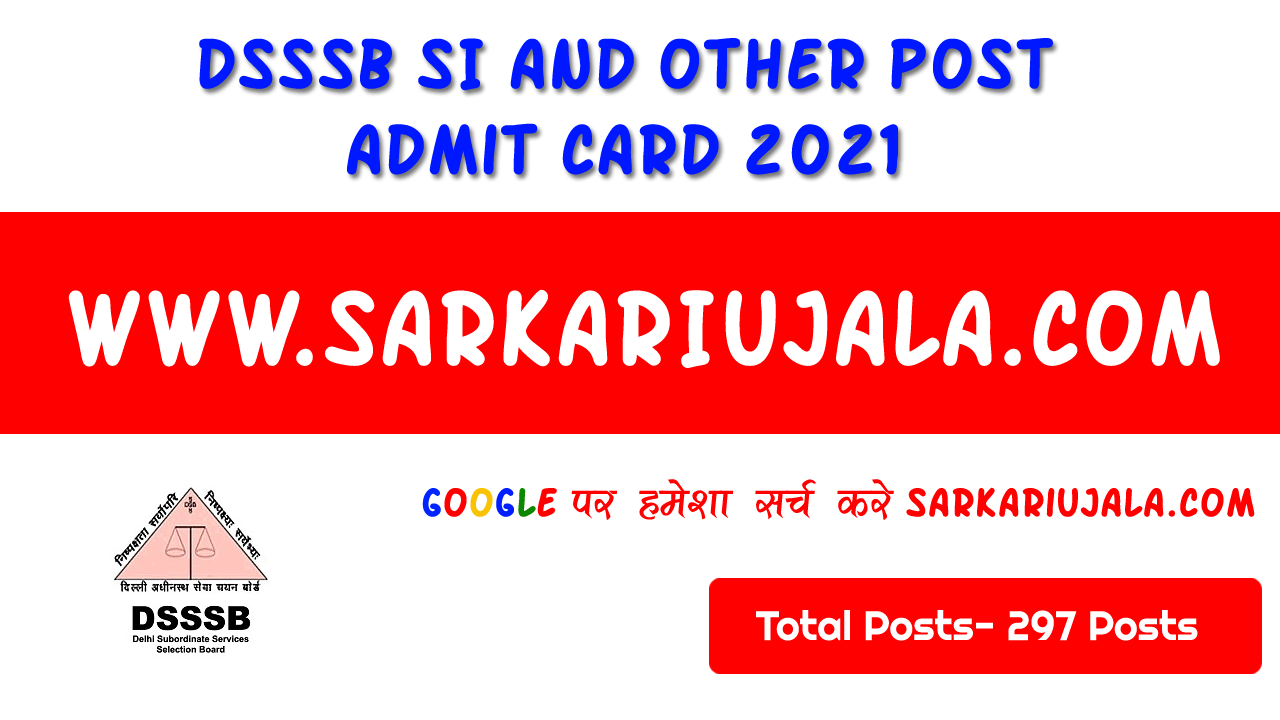 DSSSB Various Post Admit Card 2021Post Name – Sub Inspector, Junior Stenographer, Junior Assistant, Store Keeper, Technical Assistant, Accounts Assistant Cum Cashier(Delhi Subordinate Service Selection Board) | |||||