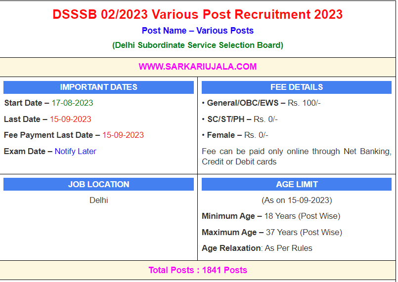 DSSSB 02/2023 Various Post Recruitment 2023Post Name – Various Posts(Delhi Subordinate Service Selection Board) | |||||