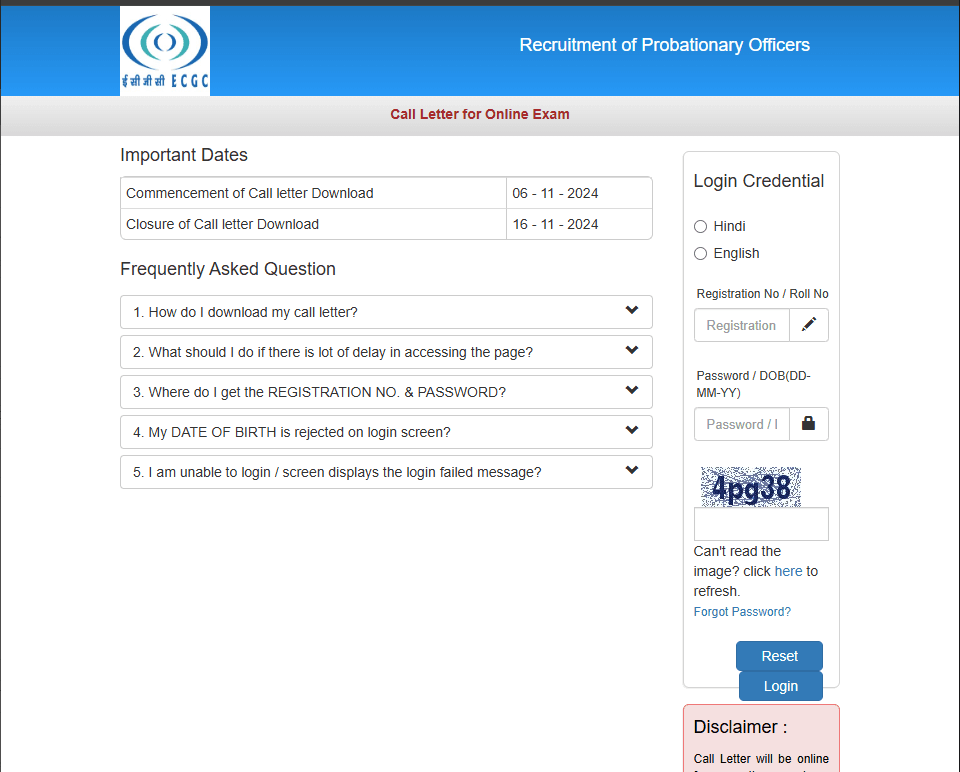 Post Description : ECGC Export Credit Guarantee Corporation of India Has Been Released Admit Card For ECGC PO Pre Online Form 2024. Which Exam Date Is 16 November 2024. Interested People Download Admit card With Using Your Roll No & DOB . Instructions for Downloading the ECGC PO Pre Admit Card 2024 : 1. In order to download their ECGC PO Admit Card 2024 candidates are required to go to the important link section provided below. 2. After getting the link candidates need to click it for downloading their ECGC PO Admit Card. 3. Candidates need to provide their following details-: Registration No. /Roll No. DOB/Password Captcha Code(if specified) 4. After providing their details appropriately candidates will be able to download their ECGC PO Admit Card. 5.Candidates can also download their Admit Card from official site of the ECGC.