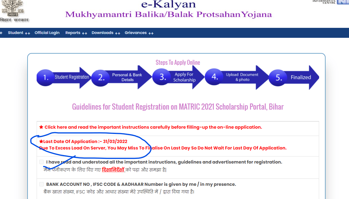 Bihar Ekalyan 10th Scholarship Online Form 2022 | |||||