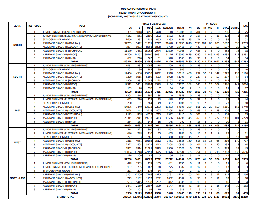 FCI Non Executive Recruitment 2022Post Name – Non Executive(Food Corporation of India) | |||||