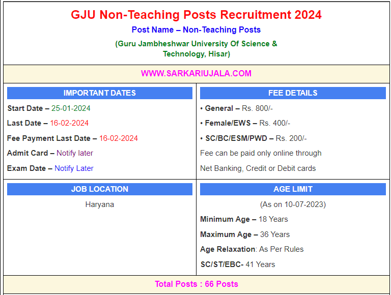 GJU Non-Teaching Posts Recruitment 2024Post Name – Non-Teaching Posts(Guru Jambheshwar University Of Science & | |||||