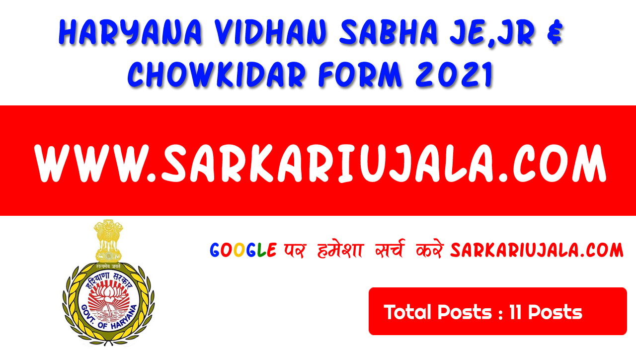 Haryana Vidhan Sabha Recruitment 2021Post Name – Reporter ,Junior Engineer,Jr. Scale Stenographer,Record Restorer,Chowkidar,Frash(Haryana Vidhan Sabha) | |||||