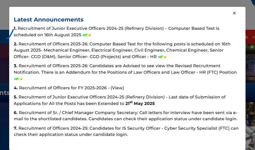 IMPORTANT DATESExam Date – 16-08-2025 Admit Card – Notify Later | VACANCY DETAILSExam Name – HPCL Junior Executive Recruitment 2025 Total Vacancy- 103 Posts | ||||